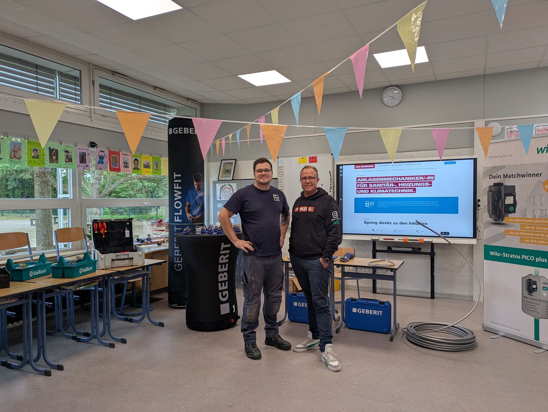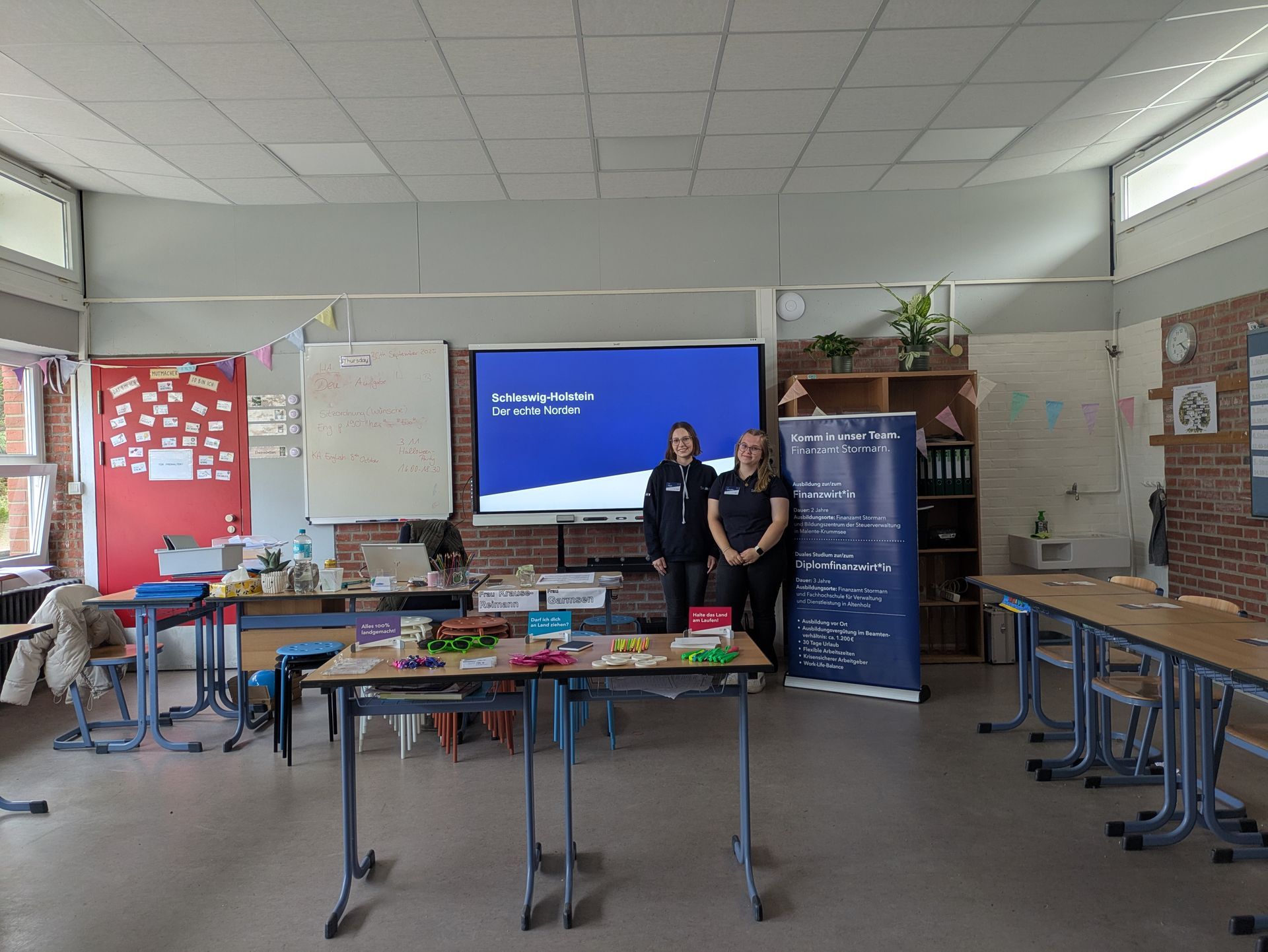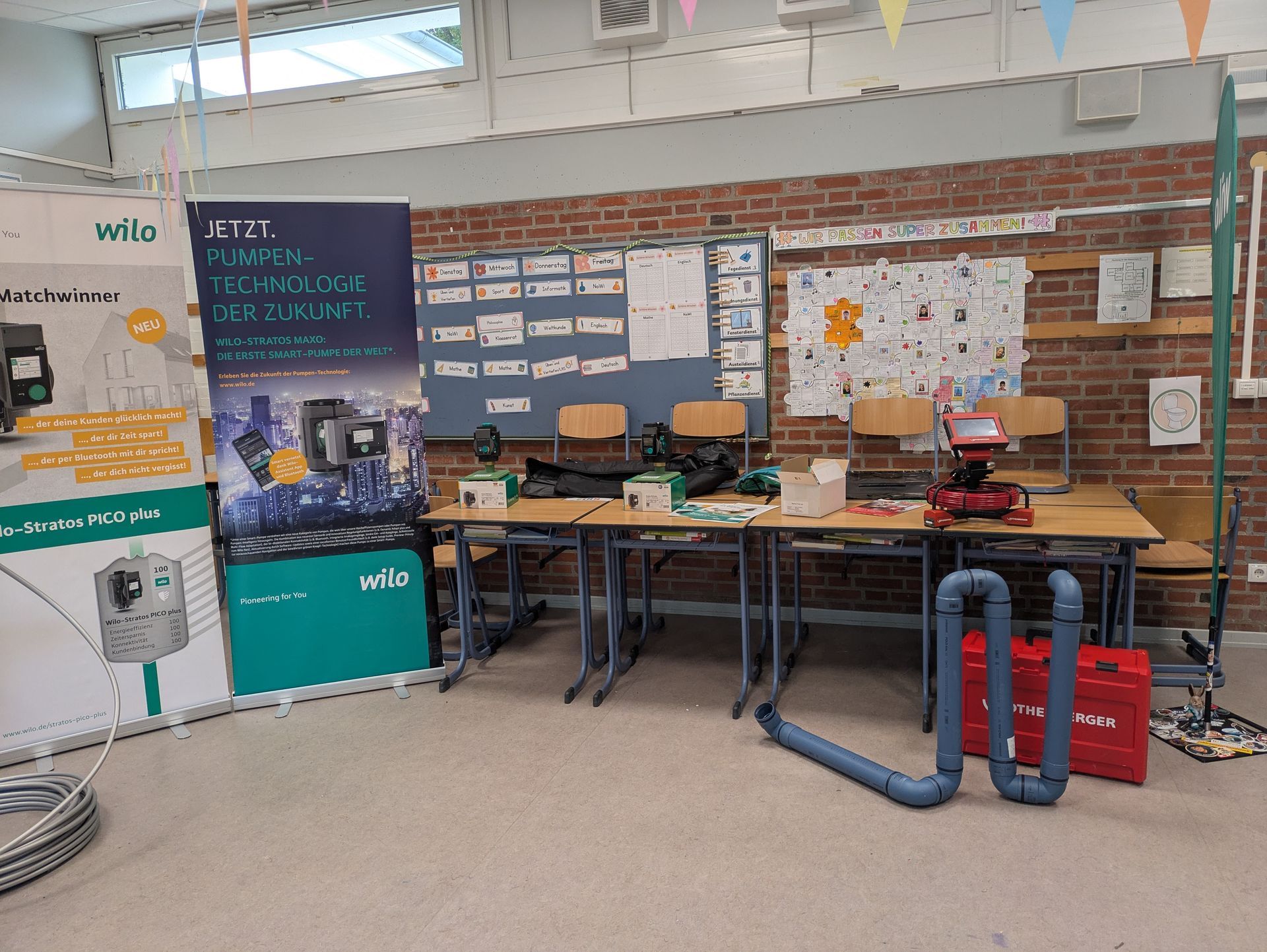 In der Zwischenzeit von 18:10-19:20 Uhr konnten die Jugendlichen die Stände der Unternehmen frei besuchen, sich informieren und Gespräche führen. Dabei ergaben sich für manche bereits eventuelle erste Kontakte zu Praktikumsstellen oder Ausbildungsplätzen. Insgesamt präsentierten sich fast 30 Betriebe und Schulen, sodass ein breites Spektrum an beruflichen Perspektiven abgedeckt war – vom Handwerk über technische Berufe bis hin zum Dienstleistungssektor.