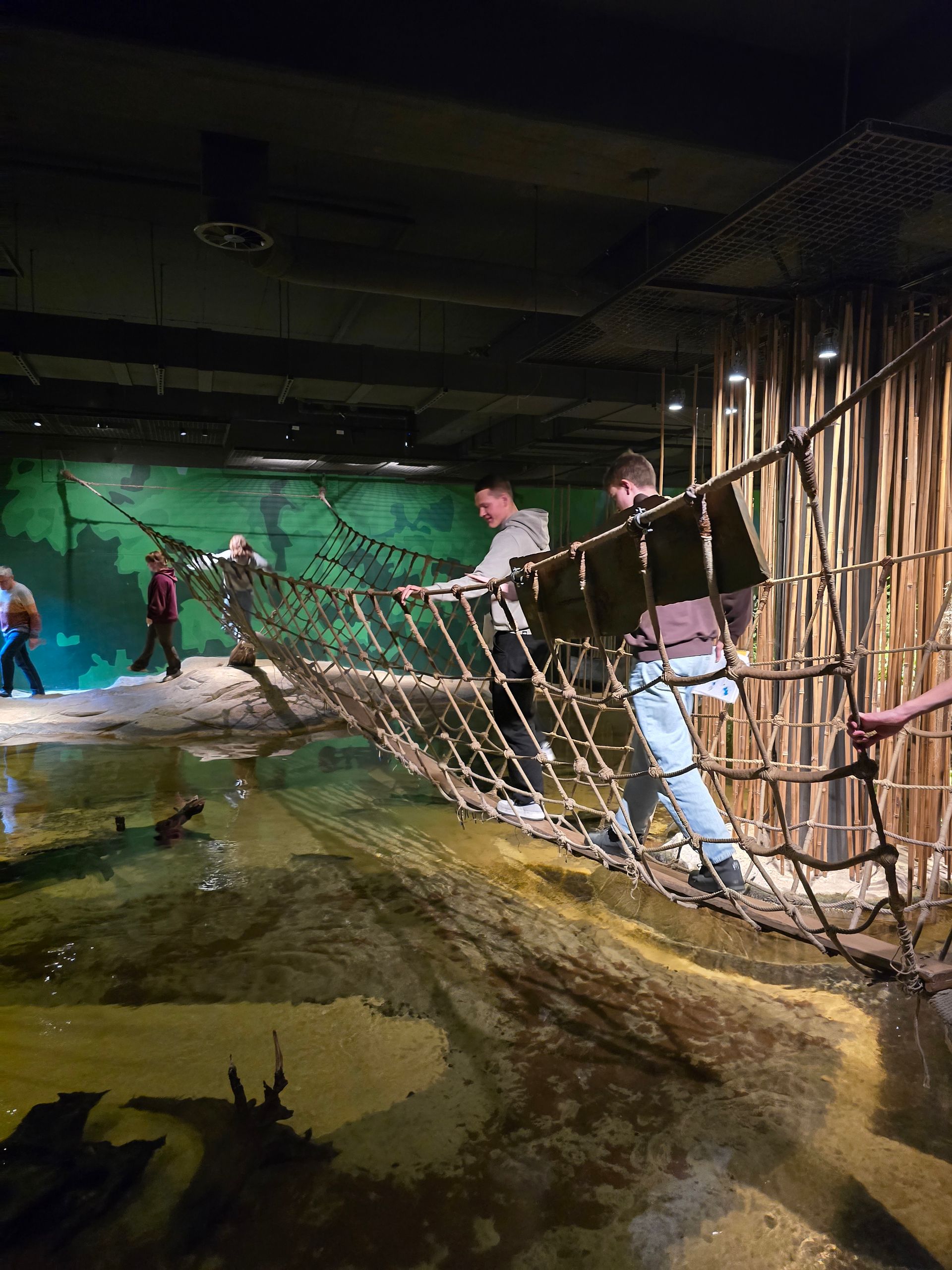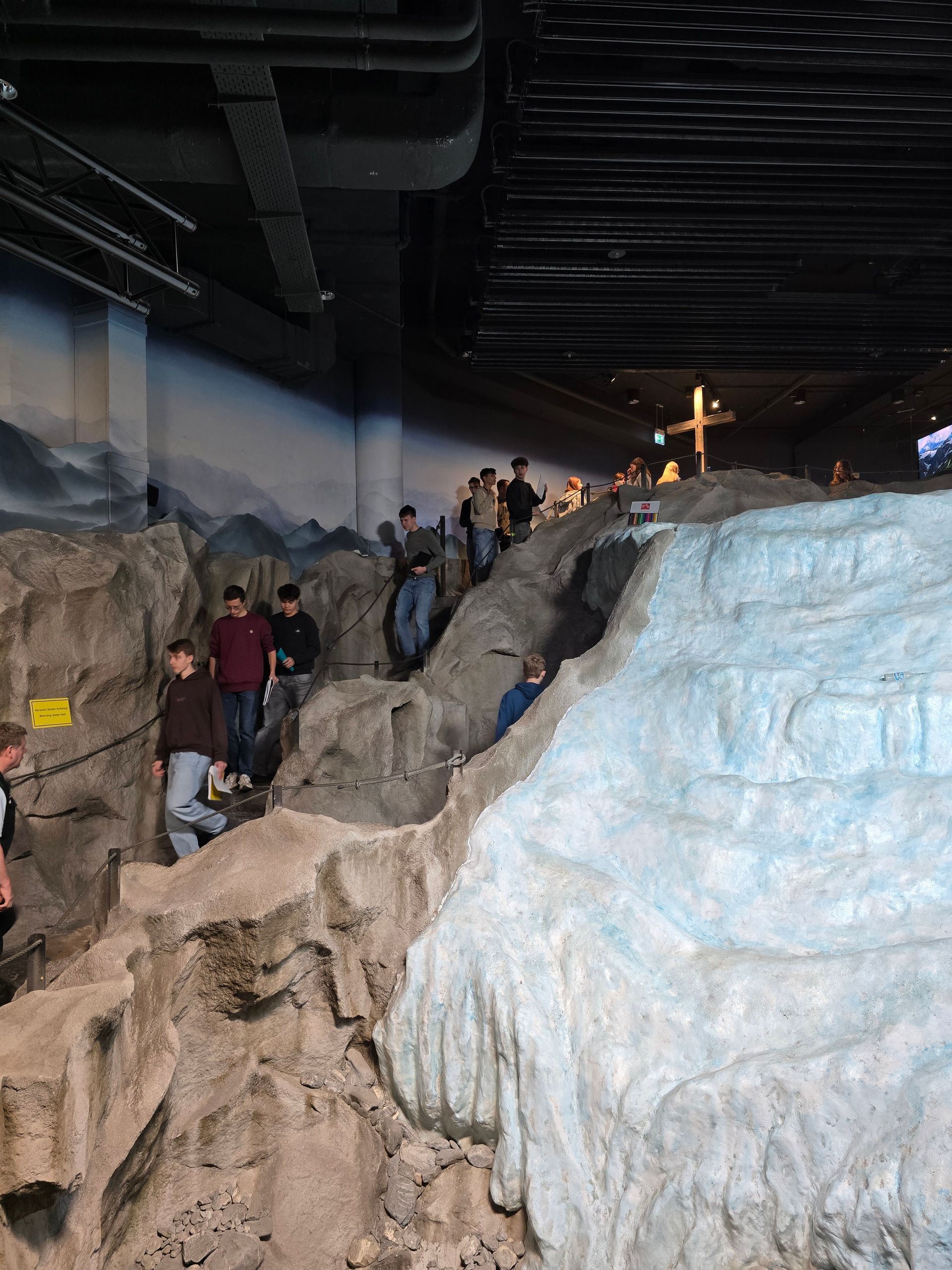 Am 17.11.2025 haben alle 10. Klassen der Hahnheide-Schule Trittau einen Ausflug ins Klimahaus nach Bremerhaven gemacht. Die Geo-Fachschaft organisierte und begleitete den Besuch und der Förderverein unterstützte den Ausflug mit einer Spende. Dort konnten wir viele verschiedene Klimazonen der Erde kennenlernen und erleben. Schon beim Betreten der Ausstellung wurde schnell klar, dass es kein normaler Museumsbesuch ist. Man läuft wie auf einer Weltreise durch unterschiedliche Länder und Kontinente und erlebt jedes Klima sehr realistisch. In manchen Räumen war es sehr kalt, in anderen extrem warm oder feucht. Man hörte passende Geräusche, wie Tierlaute, Wind oder Regen, und manchmal gab es sogar typische Gerüche. Dadurch konnten wir gut nachempfinden, wie Menschen und Tiere dort leben müssen.