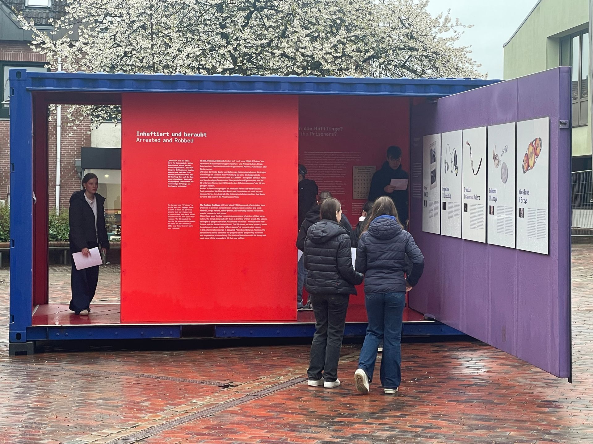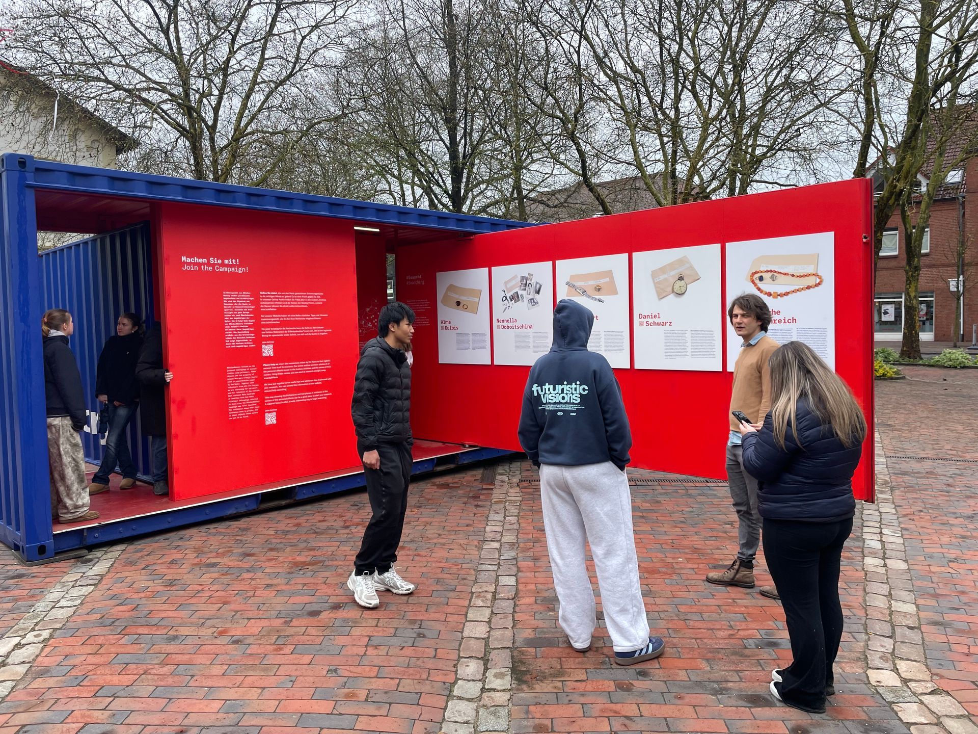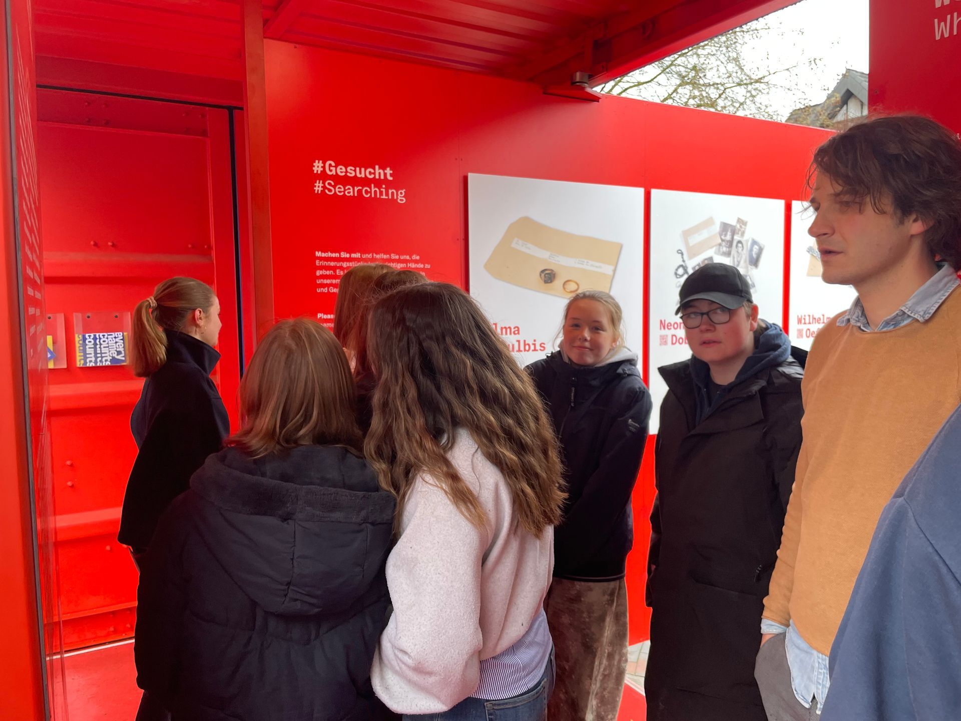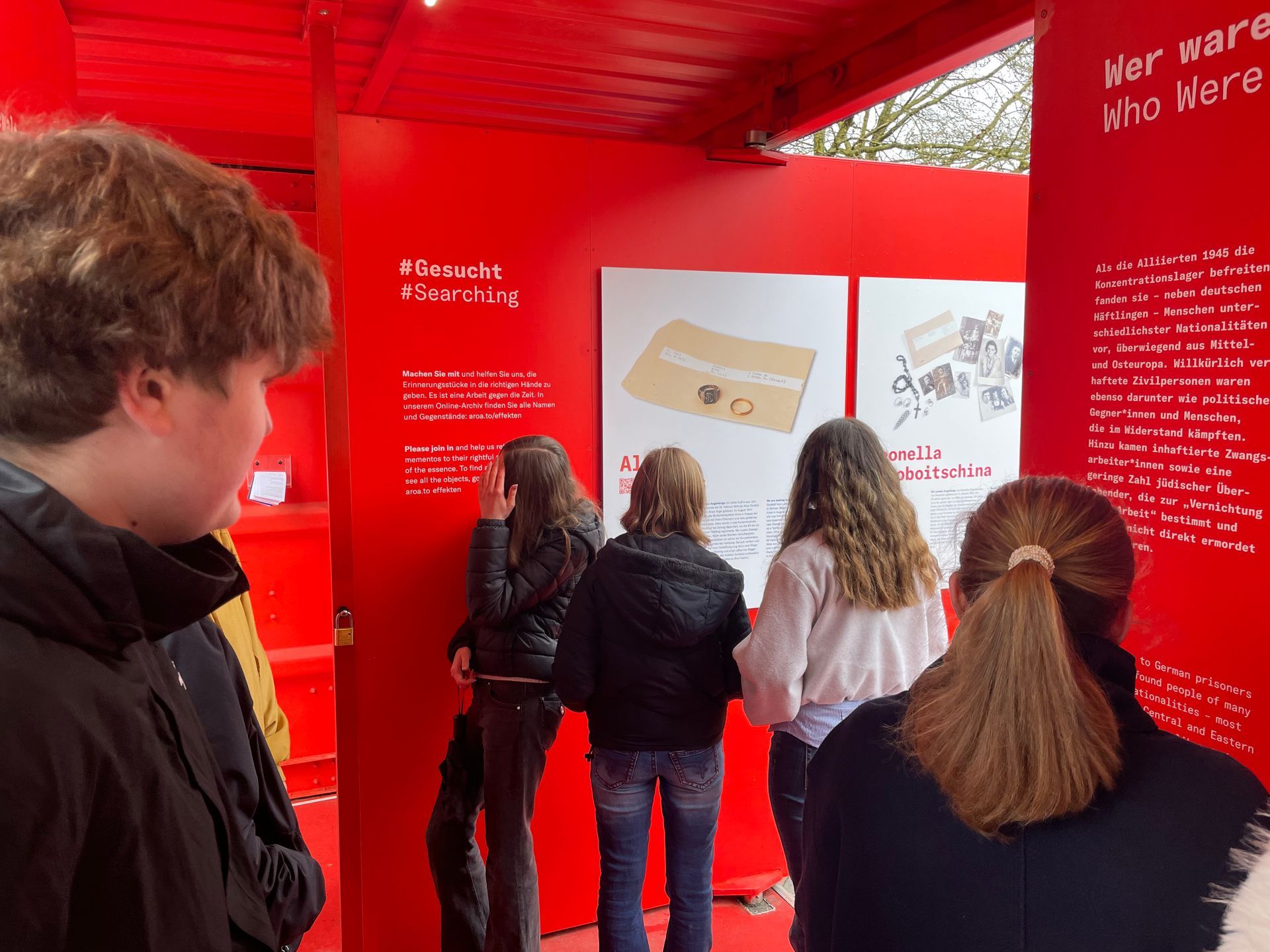 Unsere 10.Klassen besuchten kürzlich die Wanderausstellung „StolenMemory“ der Arolsen Archives. Die Ausstellung war in einem auffälligen blauen Container aufgebaut, der bereits von außen durch die große Aufschrift „#StolenMemory“ auf das Thema aufmerksam machte.