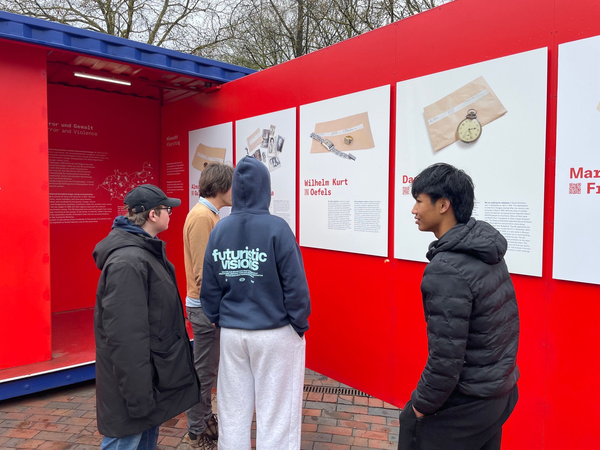 Die Schülerinnen und Schüler bewegten sich aufmerksam durch die Ausstellung, lasen die Biografien und tauschten sich über ihre Eindrücke aus. Die ruhige und konzentrierte Atmosphäre zeigte, wie sehr die Ausstellung zum Nachdenken anregte.