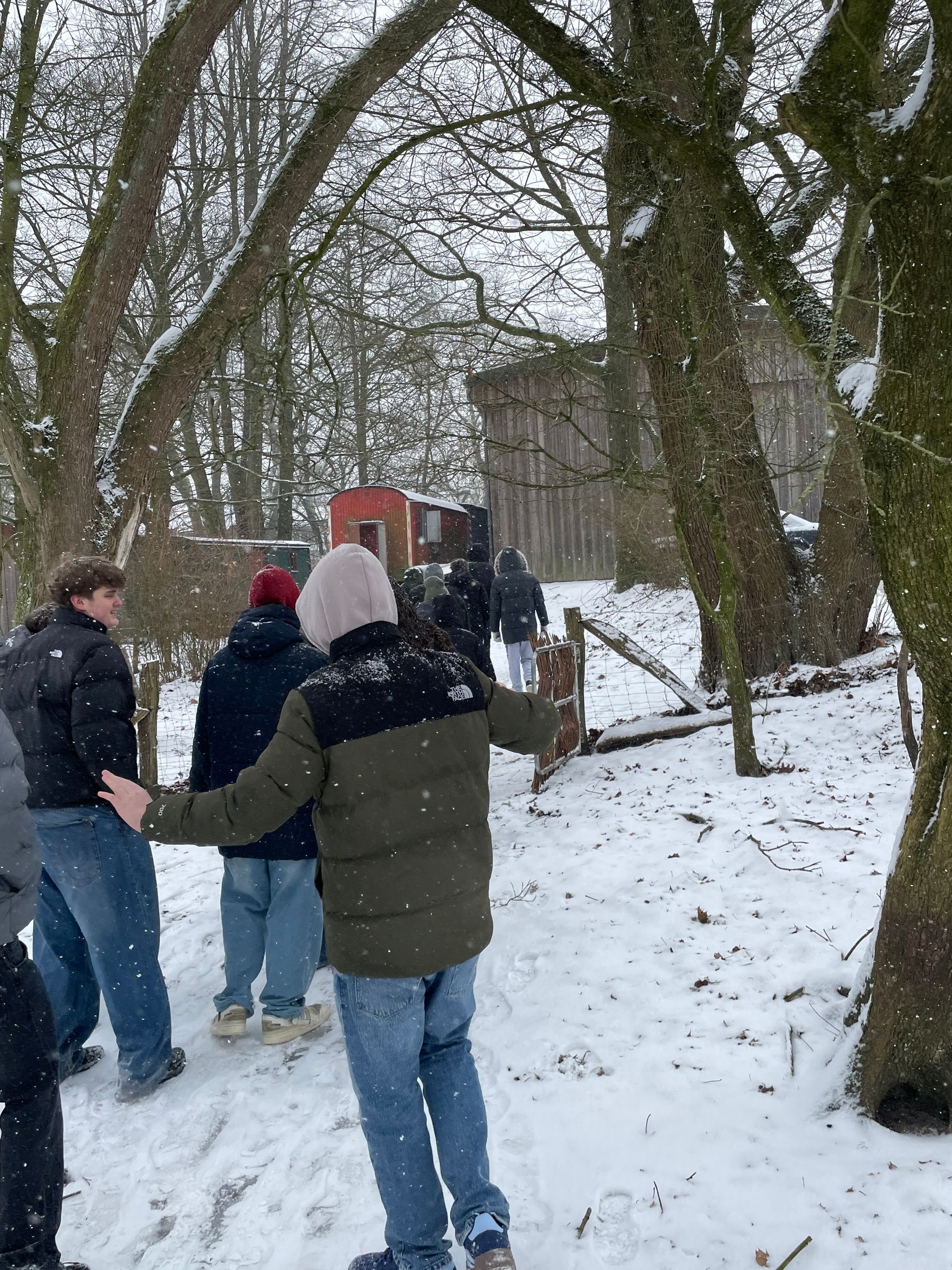 Schon beim Rundgang über das verschneite Hofgelände wurde deutlich, wie viel Arbeit und Verantwortung hinter einem nachhaltig geführten Bauernhof steckt. Die Klasse erfuhr viel über Tierhaltung, den respektvollen Umgang mit Nutztieren sowie die besonderen Prinzipien der Demeter-Landwirtschaft, bei der Natürlichkeit und Umweltbewusstsein im Mittelpunkt stehen.
