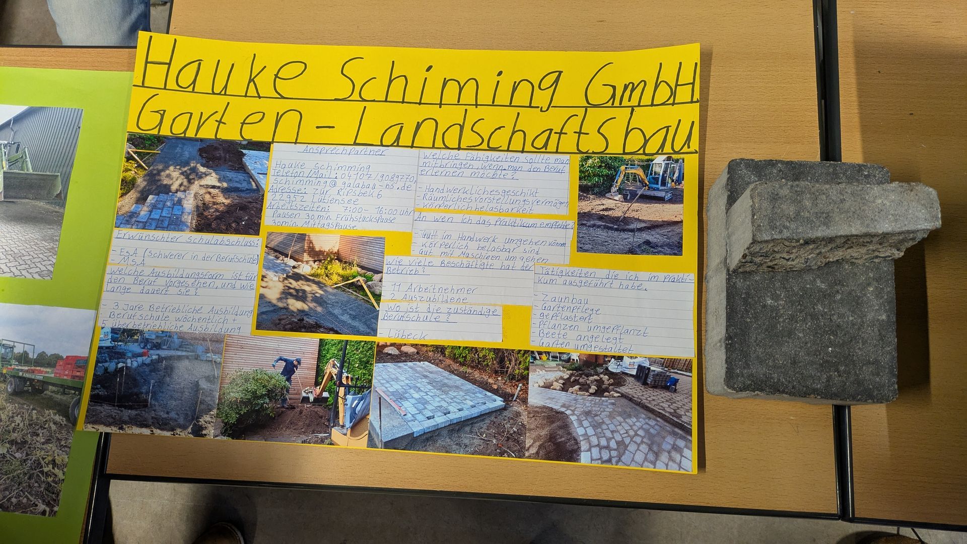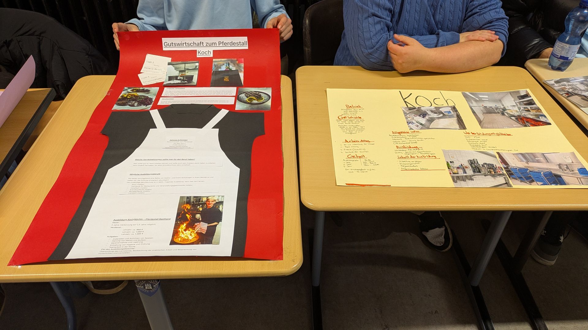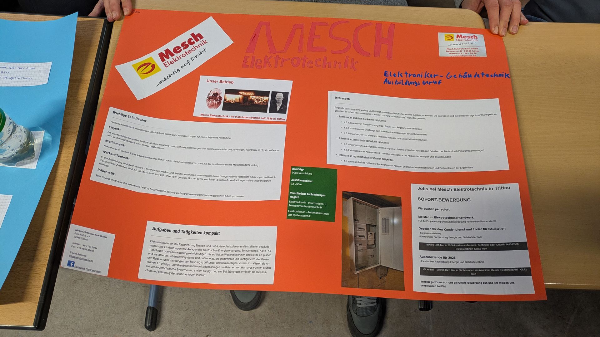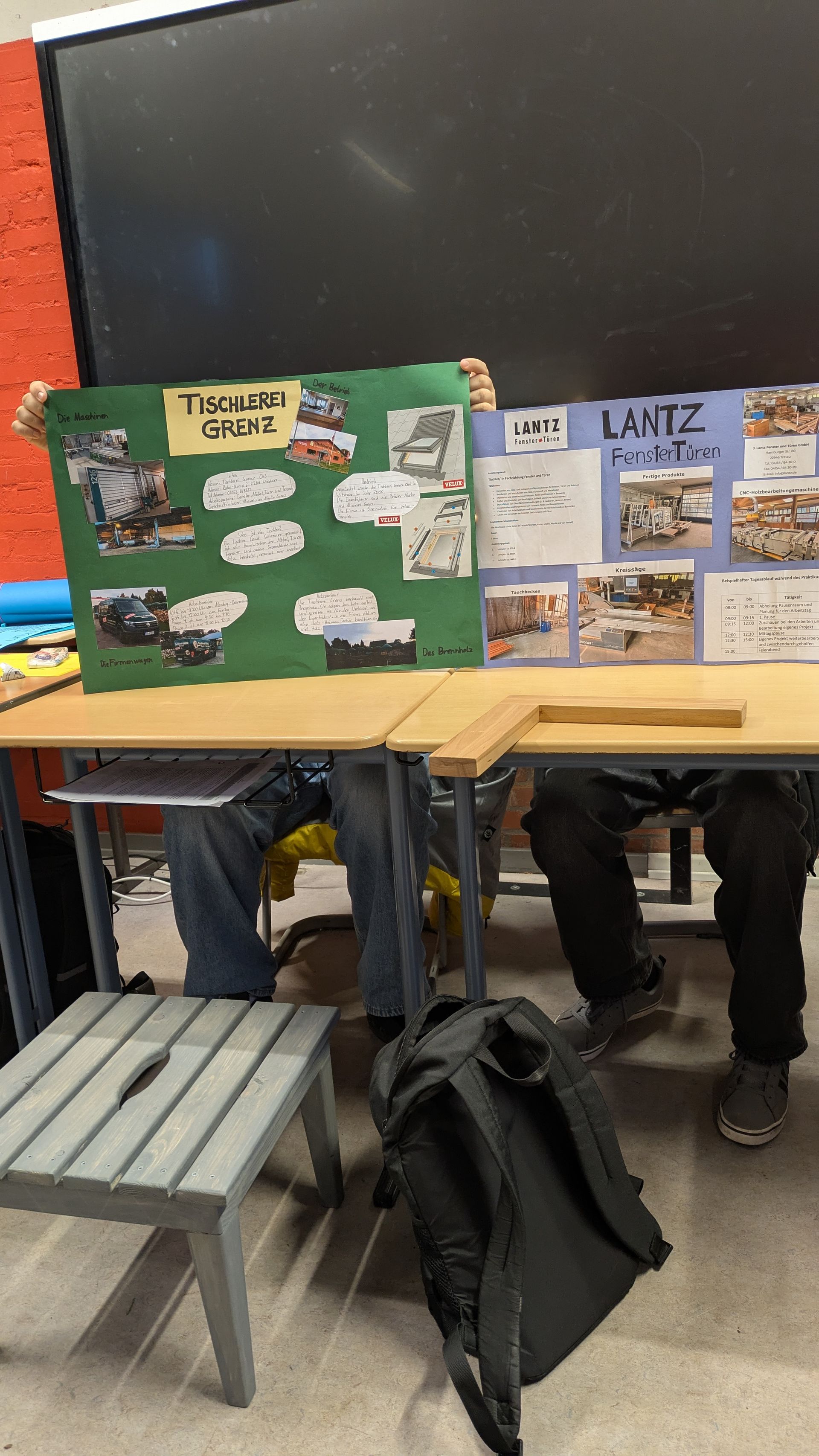 Die Neuntklässlerinnen und Neuntklässler präsentierten ihre Plakate, während die Achtklässlerinnen und Achtklässler in einem rund 60-minütigen Durchgang Zeit hatten, sich einen Überblick über die unterschiedlichen Berufsfelder zu verschaffen. In einer Art Galeriegang erkundeten sie die Räume, betrachteten die ausgestellten Plakat und kamen ins Gespräch.