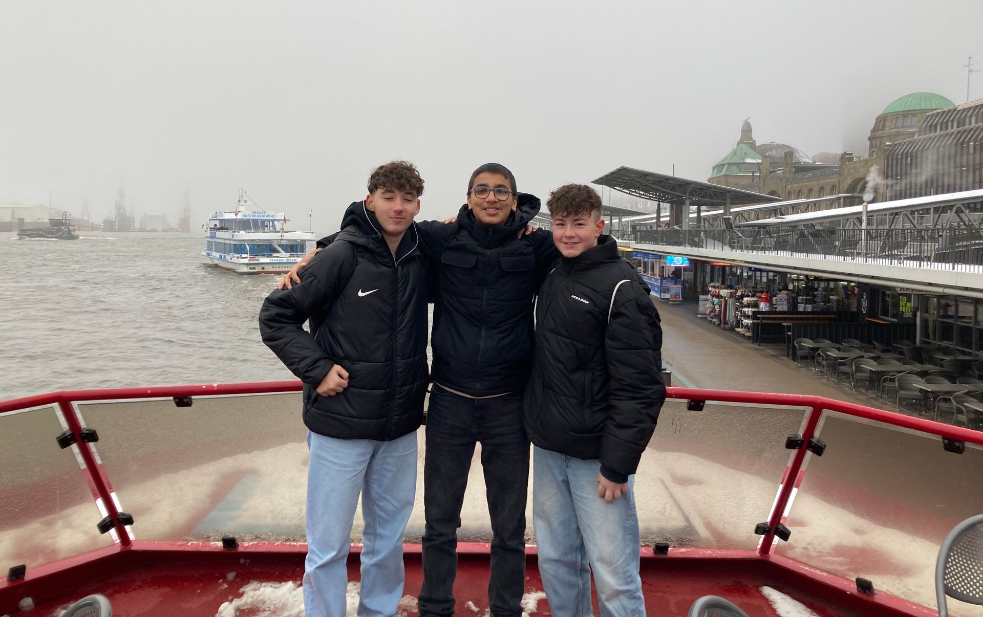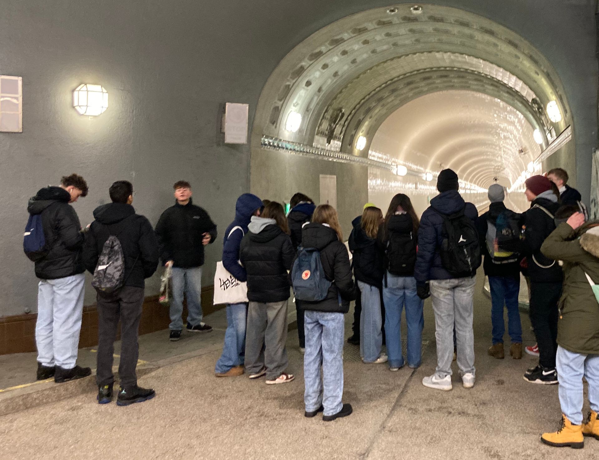 Am Donnerstag, den 11.01.2024 ging es bei kühlem Wetter für die Klasse 8c auf einen Ausflug nach Hamburg. Im Rahmen des Deutschunterrichtes haben die Schülerinnen und Schüler die Lektüre „Der aus den Docks“ gelesen. Der Roman spielt in Hamburg Eppendorf, Sankt Pauli sowie Rund um den Hafen und die Landungsbrücken. Ziel des Ausfluges war es, sich einmal gemeinsam die Originalplätze in Hamburg anzusehen, um so ein besseres Verständnis für die Lektüre zu erlangen. Durchgefroren, aber um eine tolle Erfahrung reicher ging es am Nachmittag dann wieder nach Trittau.