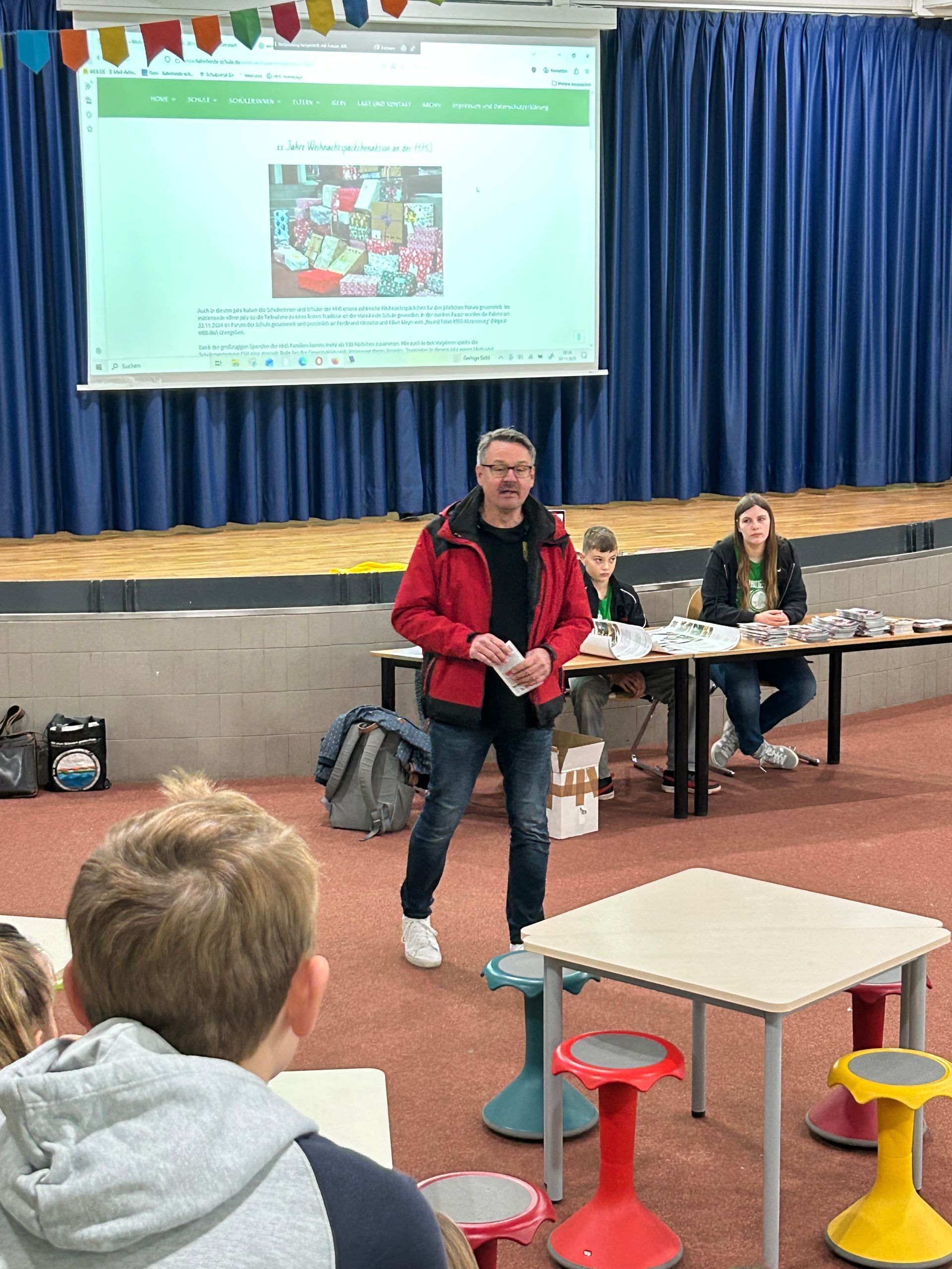 Die diesjährige Sammelaktion wurde von der Teamleitung Mailo Beins, Nele Hibinsky und Oskar Müller aus der Klasse 7b koordiniert. Im Vorfeld fand am 07.11.2025 eine Informationsveranstaltung statt, bei der unter anderem Niclas John vom Round Table über den Ablauf und die Bedeutung der Aktion informierte. Die Abholung der Päckchen erfolgte schließlich am 17.11.2025 durch Niclas und Kilian vom Round Table.