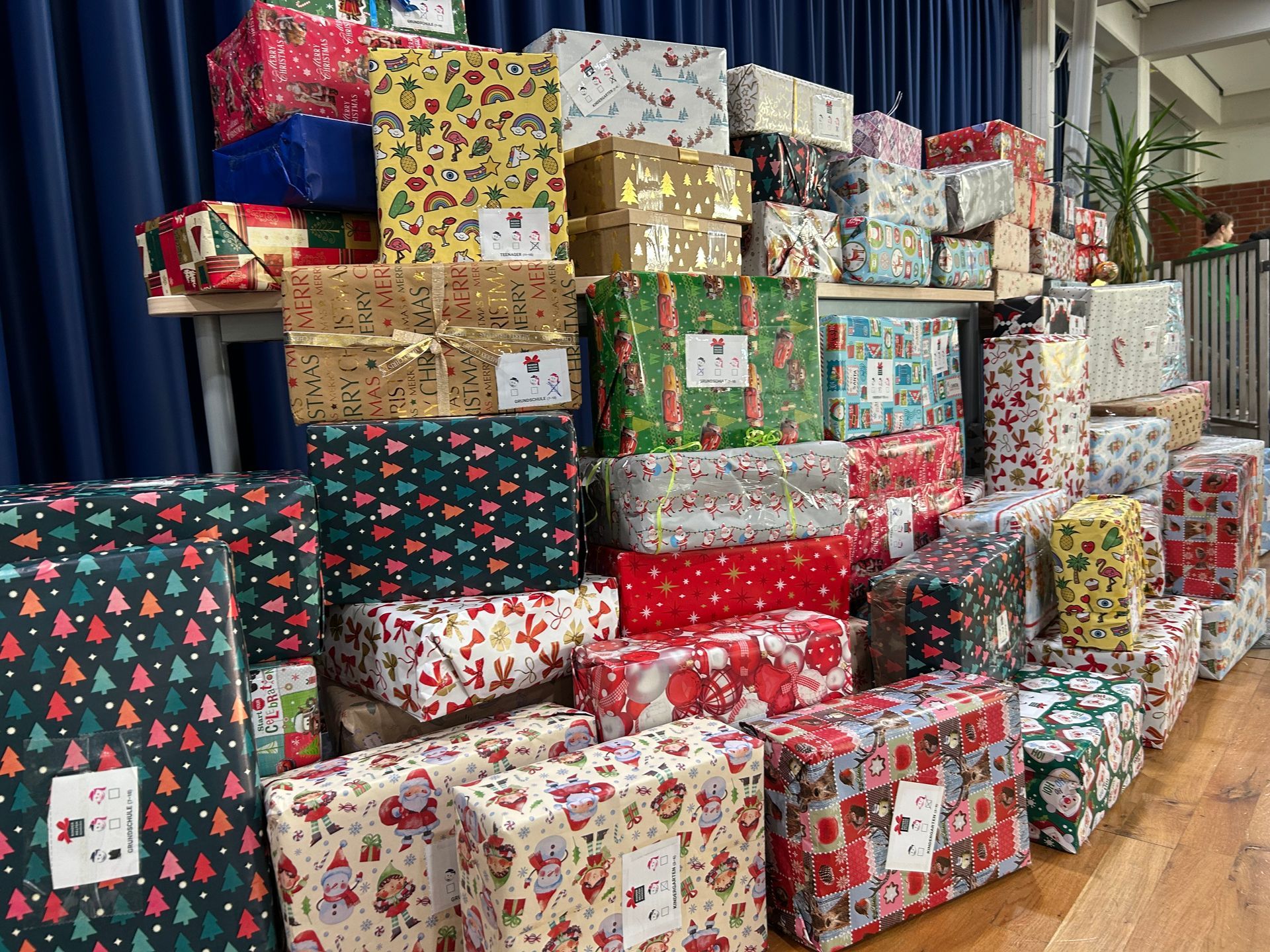 Insgesamt kamen in diesem Jahr 89 Weihnachtspäckchen zusammen – ein schönes Ergebnis, das die Spendenbereitschaft der Familien und das soziale Engagement unserer Schulgemeinschaft widerspiegelt. Die Päckchen enthalten neben kleinen Geschenken auch wichtige Dinge des täglichen Bedarfs wie Schulmaterialien und Hygieneartikel. Damit wird das Motto der Aktion auf besondere Weise erfüllt: Kinder helfen Kindern.
